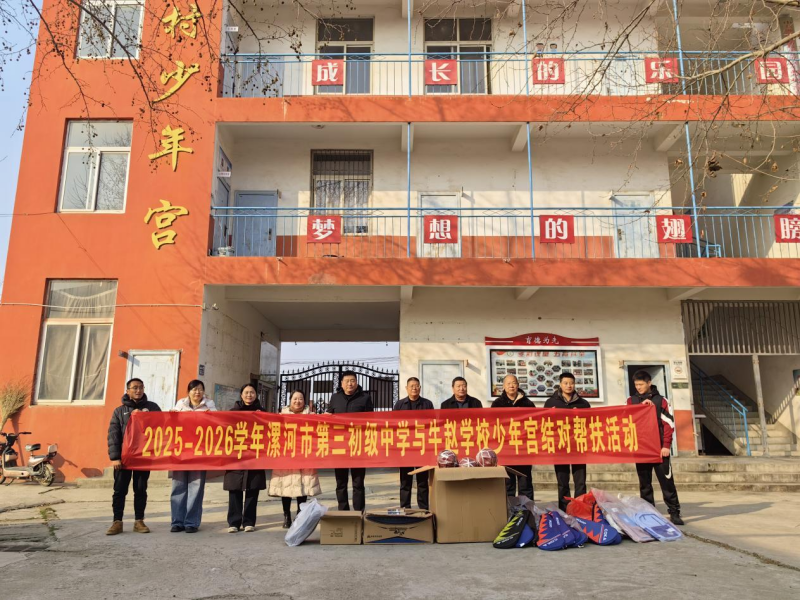 为深化教育帮扶实效,发挥省、市级学科带头人与骨干教师的引领辐射作用,助力帮扶对象提质发展,12月17日,漯河市第三初级中学党委书记赵国强,副校长丁艾虎,办公室主任袁方、副主任陈琳及志愿者教师代表一行,迎着凛凛冬风、怀揣殷殷真情,走进牛赵学校少年宫开展结对帮扶共建暨捐赠活动,为孩子们送去冬日里的温暖与关怀。活动受到牛赵学校少年宫师生的热烈欢迎,相关负责人详细介绍了少年宫的建设与运行成果,并对漯河三中的暖心帮扶致以诚挚谢意。 在捐赠仪式现场,漯河三中为家庭贫寒的留守儿童精心筹备了丰富的书籍、体育用品和学习用具,满足孩子们日常体育锻炼与课外活动的多样需求。捐赠过程中,校领导亲手将一件件物资送到孩子们手中,与他们亲切交流,仔细询问学习进度、生活近况与实际困难,勉励孩子们树立远大志向,勤奋刻苦学习,以知识为翼,成长为对社会有贡献的栋梁之材。孩子们接过崭新的书包,脸上洋溢着灿烂的笑容,纷纷表示会将这份关爱转化为学习的动力。 寒冬虽至,暖意不减;教育之路,步履不停。漯河市第三初级中学将持续深耕结对帮扶工作,拓宽帮扶维度、丰富帮扶形式,与牛赵学校少年宫加强交流协作,以实际行动为区域教育高质量发展注入汩汩动能。 来源:河南青年网