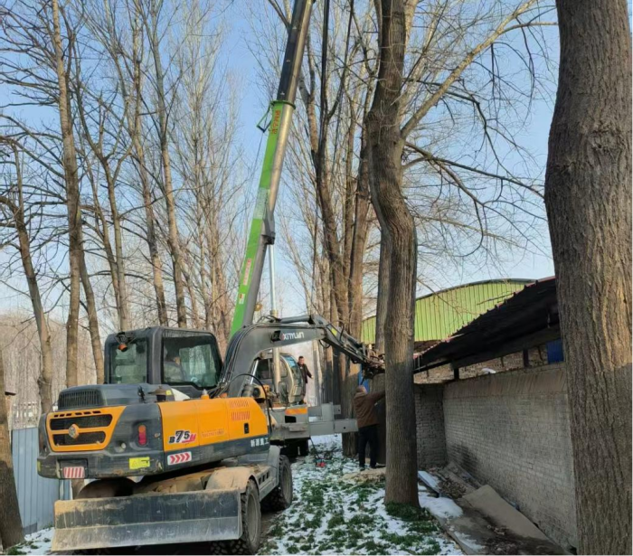 图3 挖掘机、吊车进场作业,对倒伏树木进行清理