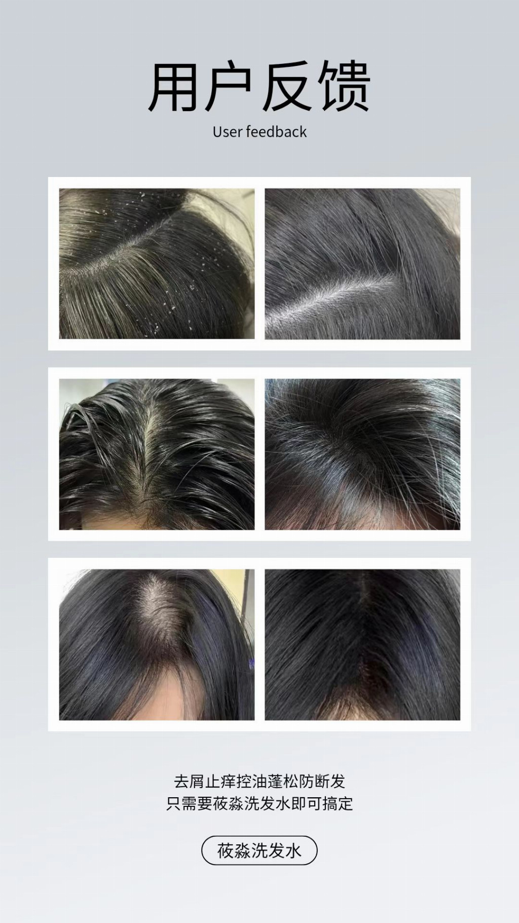 实测数据炸裂!全维度解决头皮难题 ❶ 净屑止痒:1周见效,顽固头屑彻底拜拜 单次使用就能快速缓解头皮瘙痒,连续使用1周,头屑明显减少;坚持使用4周,重度顽固头屑基本消失,头皮恢复洁净状态,再也不用为头屑沾衣尴尬。 ❷ 长效控油:3天不洗头依旧清爽 2周头皮控油改善率97.2%,洗完头皮呈现哑光清爽感,发根不黏腻、不贴头皮,哪怕是出油旺盛的头皮,也能保持3天长效清爽,不用天天洗头,懒人党狂喜。 ❸ 蓬松高颅顶:发根挺立,发量视觉翻倍 4周发根蓬松度提升率96.5%,洗完吹干后发根自然挺立,颅顶明显拔高,细软塌发质也能拥有高颅顶造型,发量视觉上翻倍,整个人更显精神。 ❹ 强韧防断:减少掉发,发丝强韧有光泽 8周发根强韧防断发率提升60.15%,多重植萃成分深入滋养毛囊,强化发丝结构,梳发、洗发时断发掉发明显减少,发丝变得柔顺有光泽,干枯毛躁问题一并改善。 全头皮适配!油/干/敏皮、轻重度头屑都能用 不管是油性头皮、干性头皮,还是易泛红敏感的脆弱头皮;不管是偶尔头屑的轻度人群、反复头痒的中度人群,还是头屑成堆的重度人群,莜淼洗发水都能温和适配。清洁力在线却不刺激头皮,控油同时不忘补水滋养,真正做到“去屑不干燥、控油不拔干”。