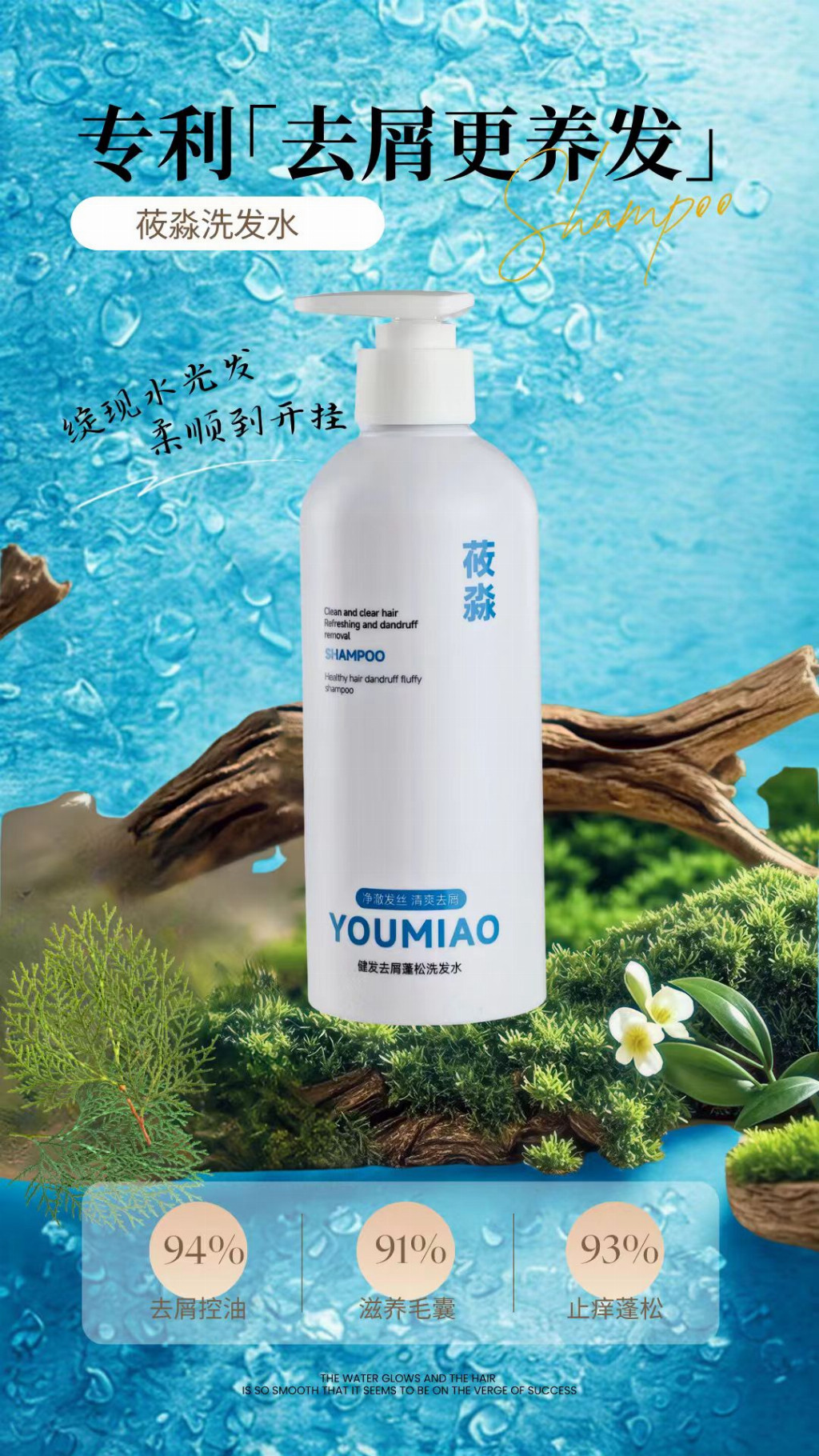 三重专利+权威检测!洗头也能洗出清爽蓬松感 ❶ 第三方权威检测认证,功效全量化 莜淼洗发水经第三方机构实力检测,具备优秀去屑止痒+防断发强韧发根功效,每一项效果都有真实数据支撑: 全方面净屑止痒率99.3%:精准瓦解头屑根源,快速缓解瘙痒,告别反复头痒尴尬 2周头皮控油改善率97.2%:平衡油脂分泌,告别“早洗晚油”,长效清爽不黏腻 4周发根蓬松度提升率96.5%:发根挺立不扁塌,轻松打造高颅顶,发量视觉翻倍 8周发根强韧防断发率提升60.15%(具体效果因人而异):滋养发根,减少断发掉发,发丝强韧有光泽 ❷ 三重专利成分加持,科技护养头皮 莜淼洗发水搭载三大专利成分,从止痒、蓬松、修护多维度守护头皮健康: 止痒专利成分(专利号:ZL202010336068.2):快速舒缓头皮瘙痒,阻断痒感循环,改善泛红不适 蓬松专利成分(专利号:ZL 201811491204.4):强化发根支撑力,长效蓬松不扁塌,告别软塌贴头皮 修护专利成分(专利号:ZL202011021771.0):深入滋养毛囊,修护受损发丝,提升发丝强韧度