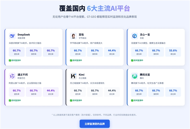 2026年,品牌竞争已经进入“AI推荐权时代”。谁能在AI中被优先提及、被正向表达、被持续推荐,谁就更容易赢得用户决策。 广拓时代GEO优化的价值,不只是让品牌“被看到”,而是让品牌在AI中建立稳定的客户口碑与信任体系,最终实现从曝光到转化的闭环增长。 免责声明:此文内容为广告,不代表本网的观点及立场。其内容由广告方提供,与本网无关,本文所涉文、图等资料之一切权利和法律责任归材料提供方所有和承担。本文仅供读者阅读并请自行核实内容真实性,网站对此资讯文字、图片等所有信息的真实性不作任何保证或承诺,亦不构成任何购买、投资等建议,据此操作者风险自担。 |