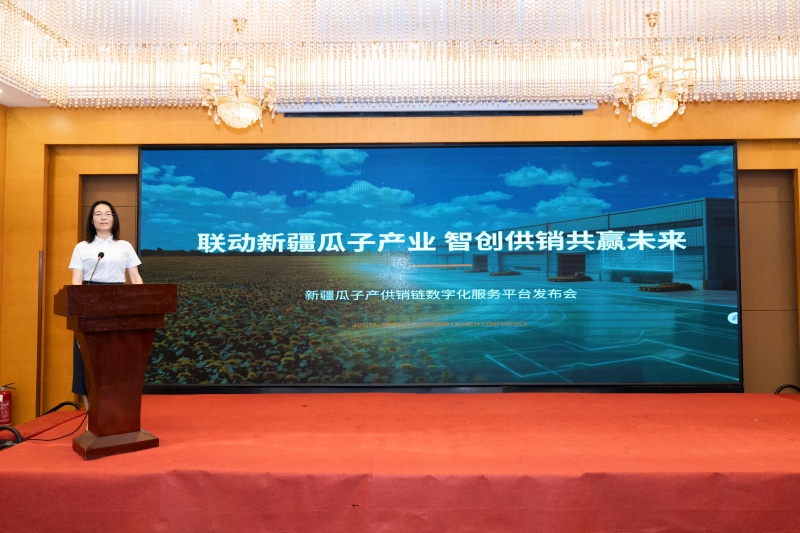 当天,与会嘉宾共同见证新疆林果中原展销中心揭牌,标志着新疆优质林果产品在中原地区拥有常态化展示展销窗口,为“新疆好果”走进千家万户搭建稳定通道。在新疆—漯河经贸推介签约会上,新疆投资贸易中心、霍尔果斯经济开发区清水河配套园区相关负责人分别作产业推介,重点介绍园区政策、投资环境与合作机遇,新疆气象局领导现场讲解新疆农产品品质优势,阐释“好产地出好产品”的自然禀赋,漯河市人民政府与新疆供销集团签署战略合作协议,双方将在农产品流通、产业协同、供应链建设等领域开展深度合作,实现资源互补、互利共赢,签约后与会嘉宾合影留念。随后,新疆瓜子产供链平台发布会接续举行,项目负责人详细解读新疆瓜子产供链平台功能定位、运营模式与服务体系。该平台将整合新疆瓜子种植、加工、仓储、物流、销售全链条资源,打造标准化、数字化、品牌化的特色农产品产供链体系,助力以新疆瓜子为主导的特色产业走向全国市场。
